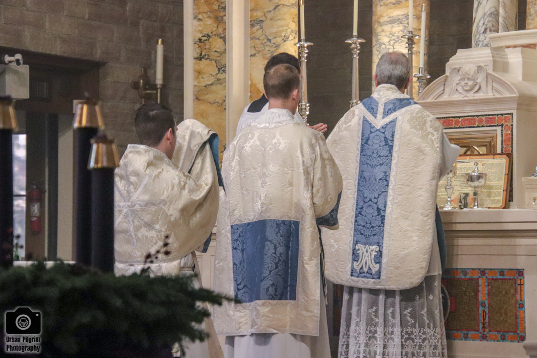 Священик по завершенні псалма повертається до середини вівтаря і там, склавши руки та злегка нахилившись, каже: